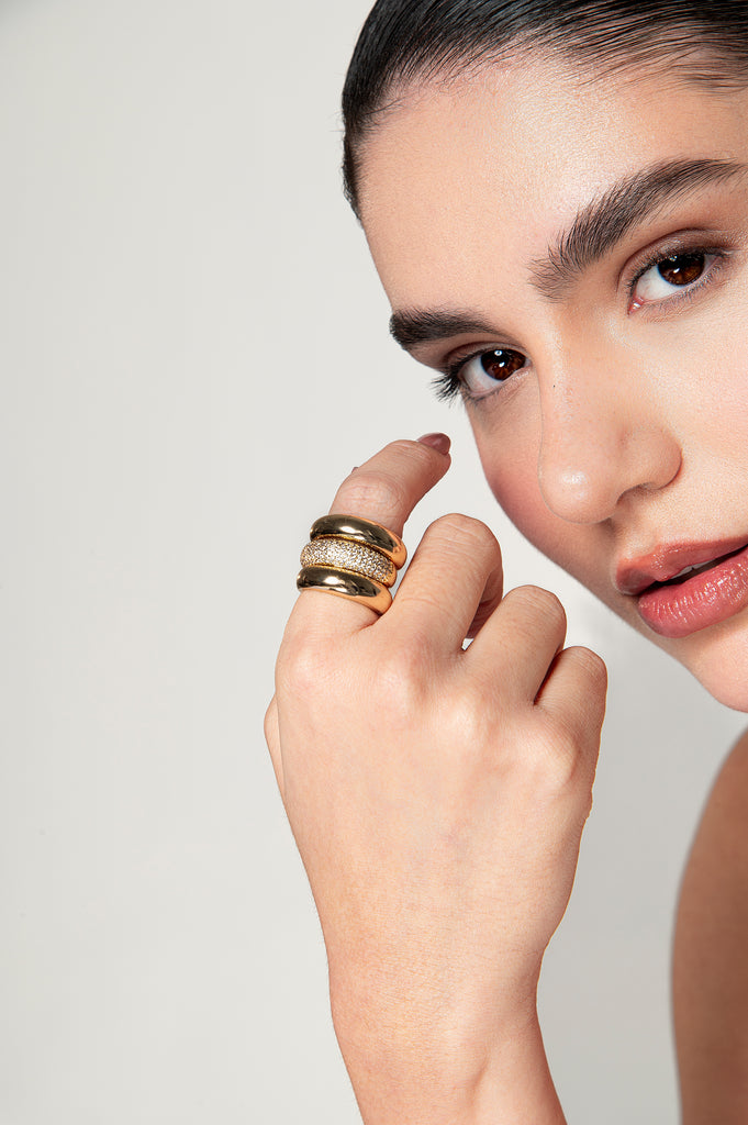 This ring is meticulously crafted, featuring delicate micro zirconias and a radiant finish achieved through 18K gold plating. Its captivating sparkle is sure to attract admiration and elevate your elegance. Perfect to stack with another LEDIANS ring!